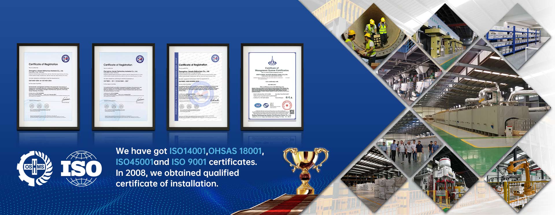 公司致力于耐火新材料、新技術(shù)、新產(chǎn)品的開發(fā)和推廣應用,是國家高新技術(shù)企業(yè),產(chǎn)品先后通過了ISO9001質(zhì)量管理體系、ISO14001環(huán)境管理體系、GB/T28001職業(yè)健康安全管理體系認證,同時具有防水防腐保溫工程專業(yè)承包貳級資質(zhì)、冶金工程施工總承包叁級資質(zhì)、環(huán)保工程專業(yè)承包叁級資質(zhì)。